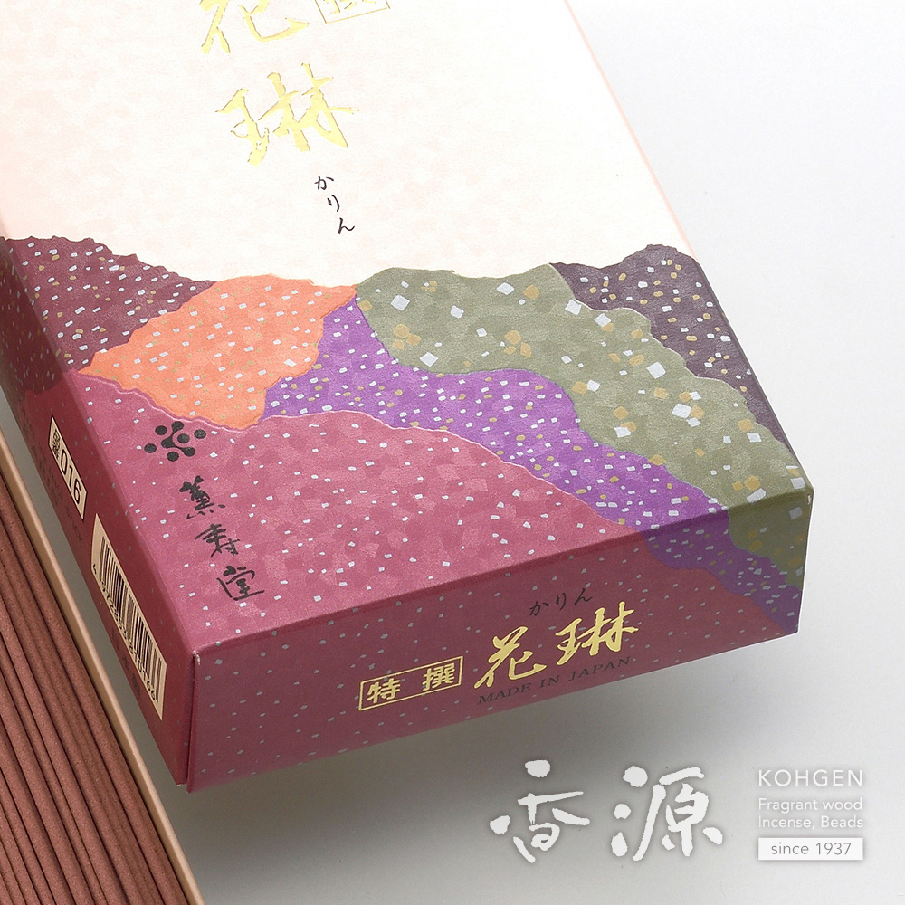 特撰花琳の華やかな香りは、お線香タイプですがお部屋用のお香としてもお使いいただける香りに仕上がっています。白檀ベースの華やかな香りをお探しの方にはぴったりの香りです。