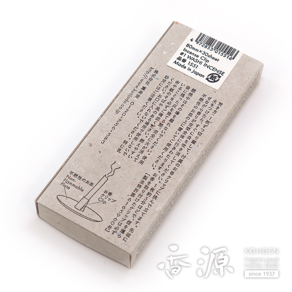 1枚ずつ切り離し、付属のお香クリップに挟んで立てます。(クリップは必ず不燃性のお皿の上に立ててください。)