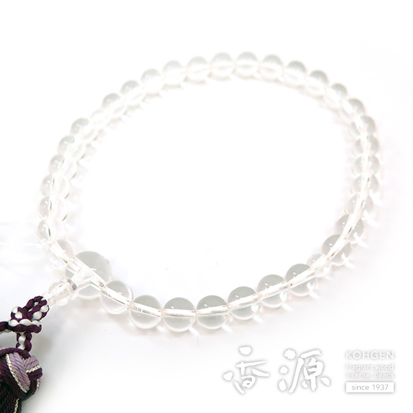 女性用数珠 水晶8mm玉 共仕立て 花かがり房(紫)