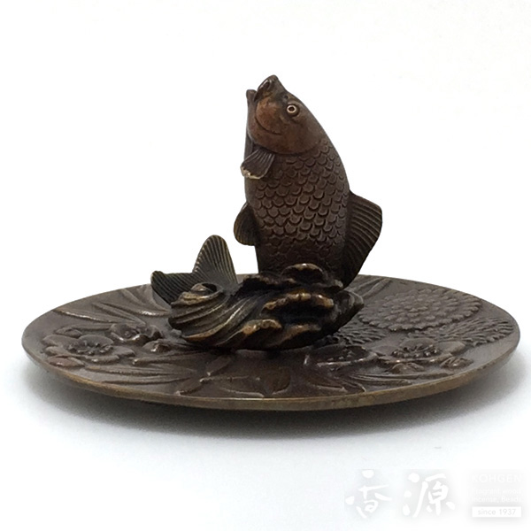 正晴作 銅製 皿:φ10.7cm 鯉:3.5×4×高さ5.7cm